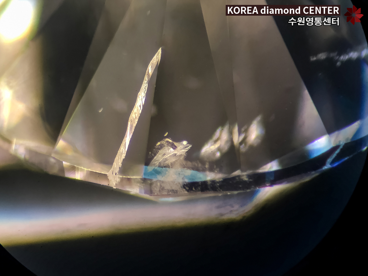 공신력을 인정받는 감정서에 작도 표기가 있지만 Ftr(페더)와 같은 내포물의 시작 부분만 표기가 될 뿐 어느 정도의 범위인지 깨진 면이 어느 정도의 상태인지까지는 표기하지 않습니다. 그래서 수원다이아몬드 나석 상태에서 감정을 진행하기 전까지는 감정서의 작도 표기나 정면에서 보이는 부분만으로 예상을 할 뿐 정확한 판단을 내리기는 어렵습니다.
