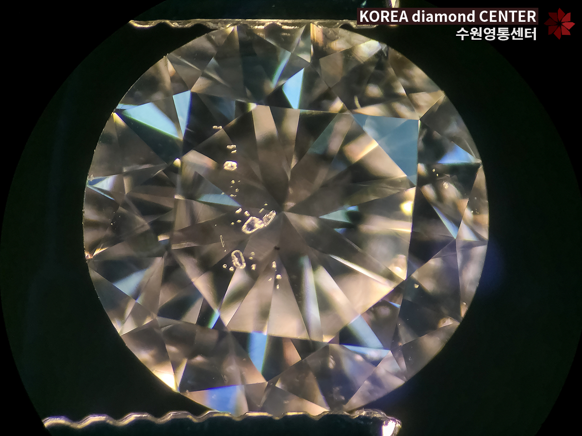 이어서 다이아몬드의 아랫부분까지 꼼꼼하게 확인한 결과 정면에서 확인되었던 내포물들이 반사되는 것을 확인할 수 있었고 Cld(클라우드) 내포물도 확인되었습니다. 전체적으로 고객님의 6부 다이아몬드는 감정서에 기재된 등급, 작도 표기와 일치하는 것으로 확인되었습니다.