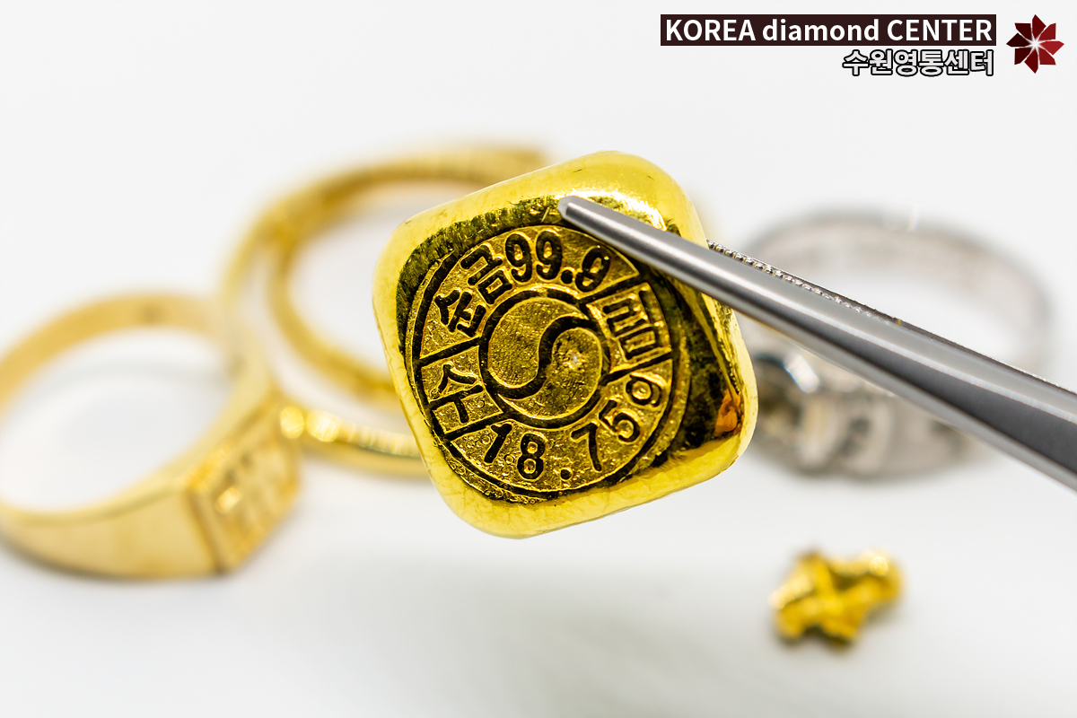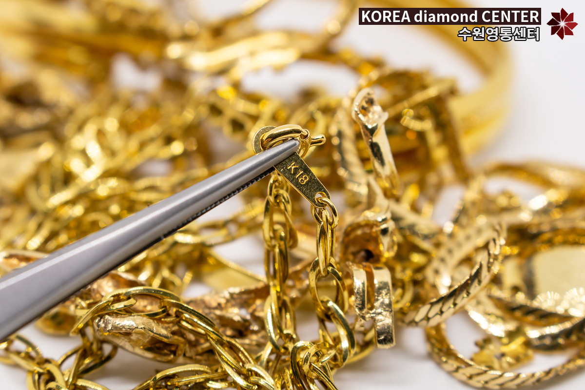 18K 제품의 경우 18K, K18, 750과 같은 각인이 새겨져 있고 14K는 K14, 585라는 각인이 새겨져 있어 이를 통해 확인할 수 있습니다. 일반적으로 각인이 되어있기 때문에 이를 보고 구분이 가능하지만 착용하시거나 시간이 오래되어 각인이 지워지거나 흐릿해진 경우에는 고객님들이 쉽게 확인하기가 어려운데요. 이를 악용해 동탄금팔때 일부 업체들은 금 함량을 정확히 알려주지 않고 18K 제품을 14K와 같은 더 낮은 함량의 시세를 적용해 매입하기도 합니다. 수원영통센터에서는 시금석과 분해 용액을 이용해 고객님 앞에서 정확하게 확인시켜 드린 뒤 시세대로 금매입을 진행하고 있습니다.