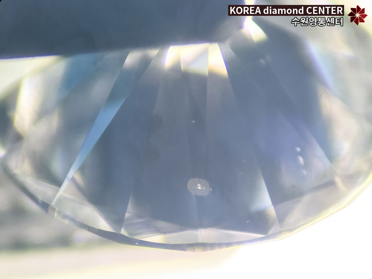 다음으로 GIA다이아매입 고객님의 다이아몬드 내, 외부에 존재하는 내포물을 확인하는 투명도 등급을 감정하였습니다. 투명도 등급은 FL > IF > VVS1 > VVS2 > VS1 > VS2 > SI1 > SI2 > I1 > I2 > I3로 구분하고 SI2 등급까지 감정서를 발행합니다. 투명도 등급 감정은 다이아몬드의 내외부에 포함된 내포물을 확인하는 것으로 내포물의 종류와 수량, 위치, 크기 등 여러 조건들을 살펴보고 감정을 진행하게 됩니다. 고객님의 다이아몬드를 현미경을 통해 감정한 결과 정면 테이블면과 오른쪽 5시 방향에서 크고 작은 내포물들을 확인할 수 있었고 감정서와 동일한 SI1 등급으로 확인되었습니다.