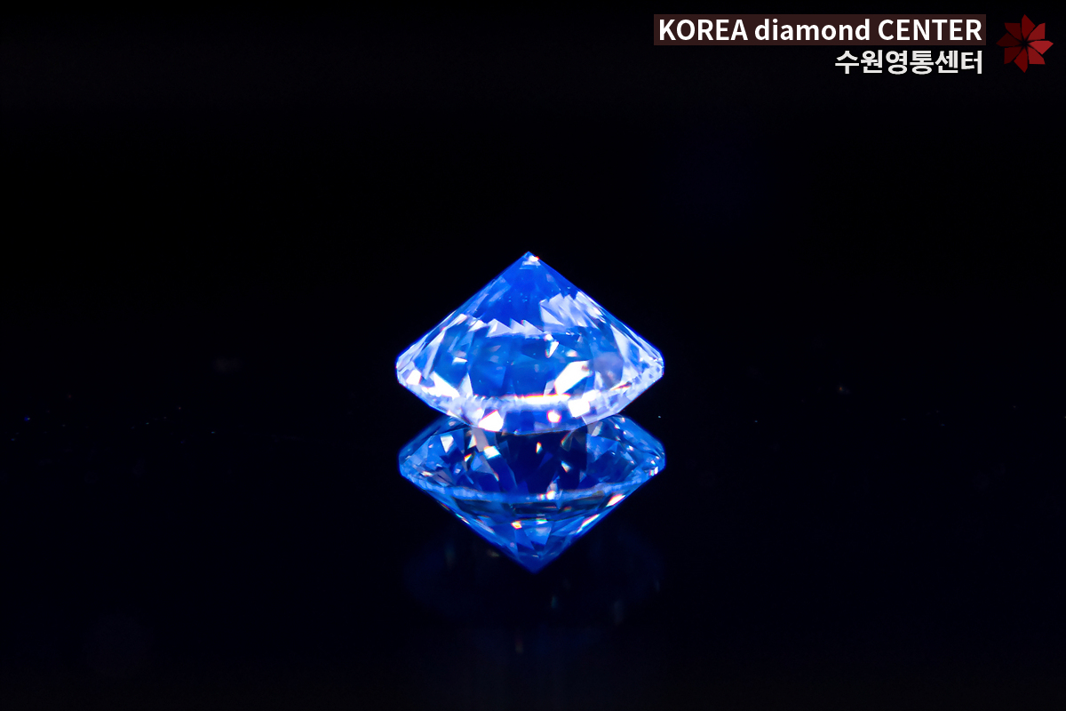 마지막 자외선 형광반응의 측정은 전용 장비를 사용하며, 자외선에 반응하는 정도와 컬러를 확인합니다. 반응의 정도는 none > faint > medium > strong > very strong 다섯 가지 등급으로 구분을 하는데요. 컷 등급과 마찬가지로 일반적인 GIA 다이아몬드는 None 등급인데 반해 고객님의 3부 다이아몬드는 Faint blue 등급으로 파란빛을 보이는 것을 확인할 수 있었습니다. GIA 감정서의 내용과 일치하지만 GIA다이아매입 가격 차이는 발생할 수 있는 부분입니다.
