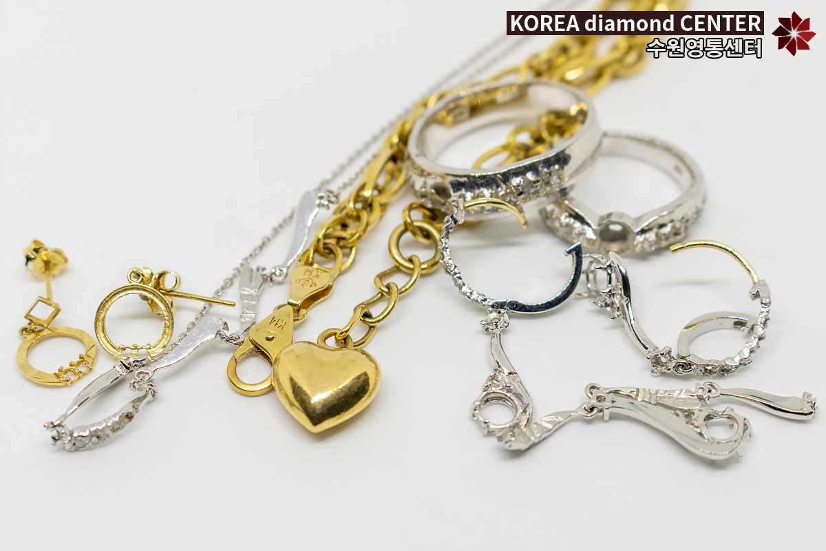 수원영통센터에서 취급하는 금제품들은 다른 영통금거래소나 금은방과 동일합니다. 순금 돌반지, 돌팔찌와 같은 순금 제품부터 각종 18K, 14K, 백금 액세서리들 그리고 치과 치료 후 받으신 치금은 물론 지금은 잘 사용하지 않으시는 은수저까지 모두 거래가 가능합니다. 줄이 끊어져 버린 목걸이나, 한쪽을 분실한 귀걸이, 파손되어 착용하지 않는 팔찌 등 제품의 형태와 관계없이 금 함량과 무게만 측정할 수 있다면 모두 수원금시세대로 금매입이 가능합니다.