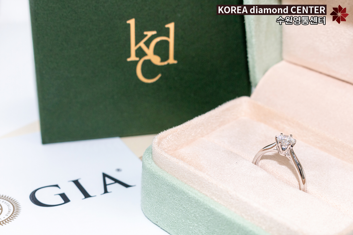 고객님께서 GIA 5부다이아몬드반지 구입을 결정하신 뒤 원하시는 날짜에 맞춰 GIA 5부다이아몬드반지 제작이 완료가 되었는데요. 수원영통센터에서 다이아몬드를 구입하시게 되면 선택하셨던 브랜드의 감정서와 한국다이아몬드센터의 보증서까지 함께 포장되어 출고됩니다. 마지막으로 고객님께서 수원영통센터를 방문하셔서 GIA 5부다이아몬드반지가 이상이 없는지를 확인합니다. 그 후 세팅된 상태에서 처음 선택하신 다이아몬드가 맞는지 측면 거들 부분의 GIA 리포트 넘버 각인을 확인시켜드리고 성공적인 프러포즈를 기원하며 GIA 5부다이아몬드반지 구입이 마무리되었습니다.
