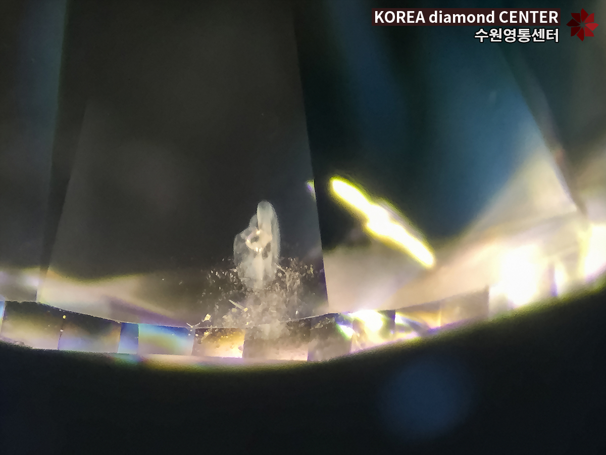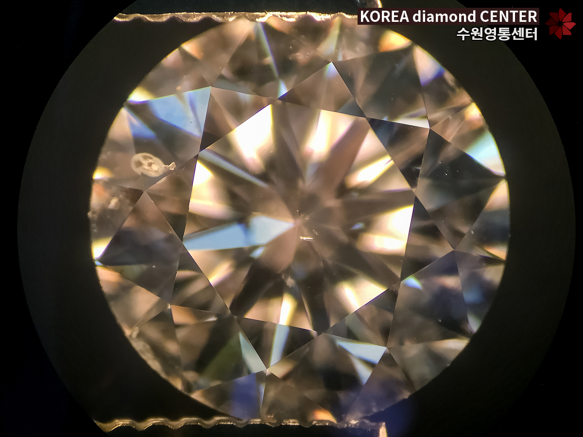 이어서 1캐럿다이아몬드의 옆 거들 부분과 아랫부분까지 꼼꼼하게 확인한 결과 거들 부분에서 Ftr(페더), Xtl(크리스탈) 내포물들을, 아랫쪽에서는 Ftr(페더) 내포물과 범위가 넓게 퍼져있는 Cld(클라우드) 내포물들을 확인할 수 있었습니다. 전체적으로 내포물들의 종류, 개수, 크기 등을 확인했을 때 SI2 등급 중에서도 조금 더 실상태가 좋지 않은 편으로 동탄 1캐럿다이아몬드 가격에 영향을 줄 것으로 확인되었습니다.