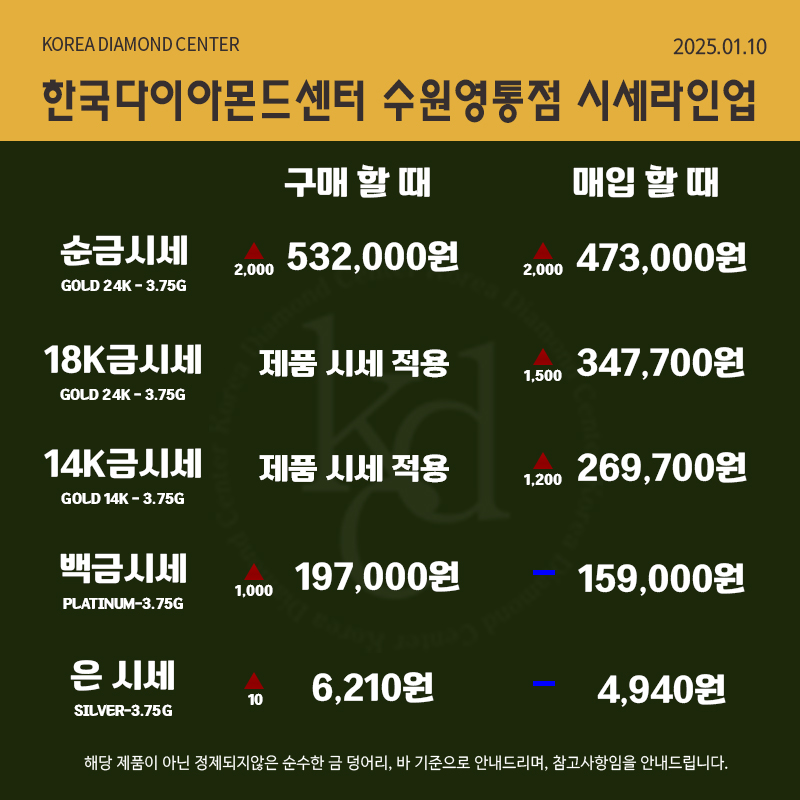 2025년 1월 10일 오늘의 금시세 순금 24K, 18K, 14K 금매입