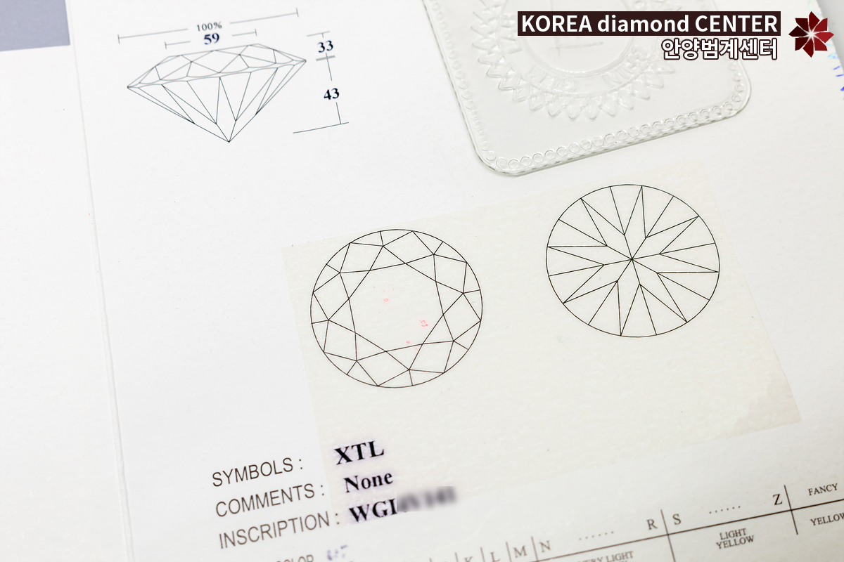 먼저 고객님이 가져오신 우신3부다이아반지의 감정서인데요. 감정서는 우신감정서로, 국내에서 공신력을 인정받고 국내 다이아몬드 시장에서 인기가 많은 브랜드입니다. 그럼 감정서를 통해 고객님의 다이아몬드 등급을 확인해보도록 하겠습니다.