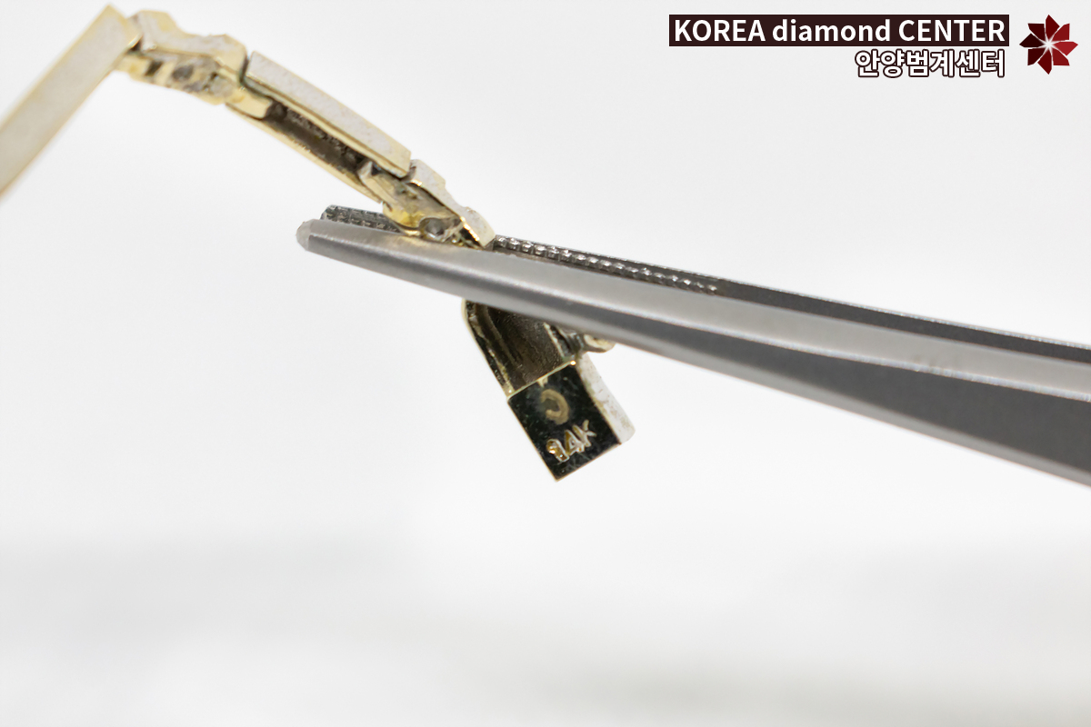 14K 함량 확인도 18K 제품과 마찬가지로 제품의 안쪽, 목걸이나 팔찌와 같이 시건장치가 있는 제품들은 시건장치에 14K, K14, 585라고 새겨진 각인을 통해 확인할 수 있습니다. 18K와 14K의 매입 시세가 차이 나는 만큼 매입 전 가지고 계신 금제품들의 함량을 한 번씩 확인해 보시는 것을 추천드립니다.