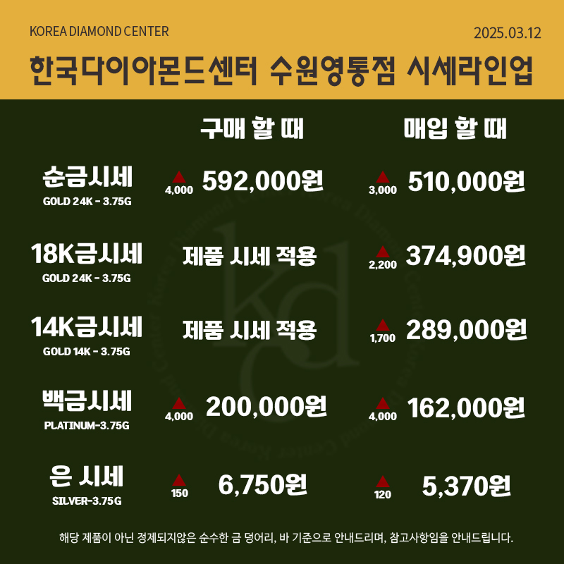 2025년 3월 12일 오늘의 금시세 순금 24K, 18K, 14K 금매입