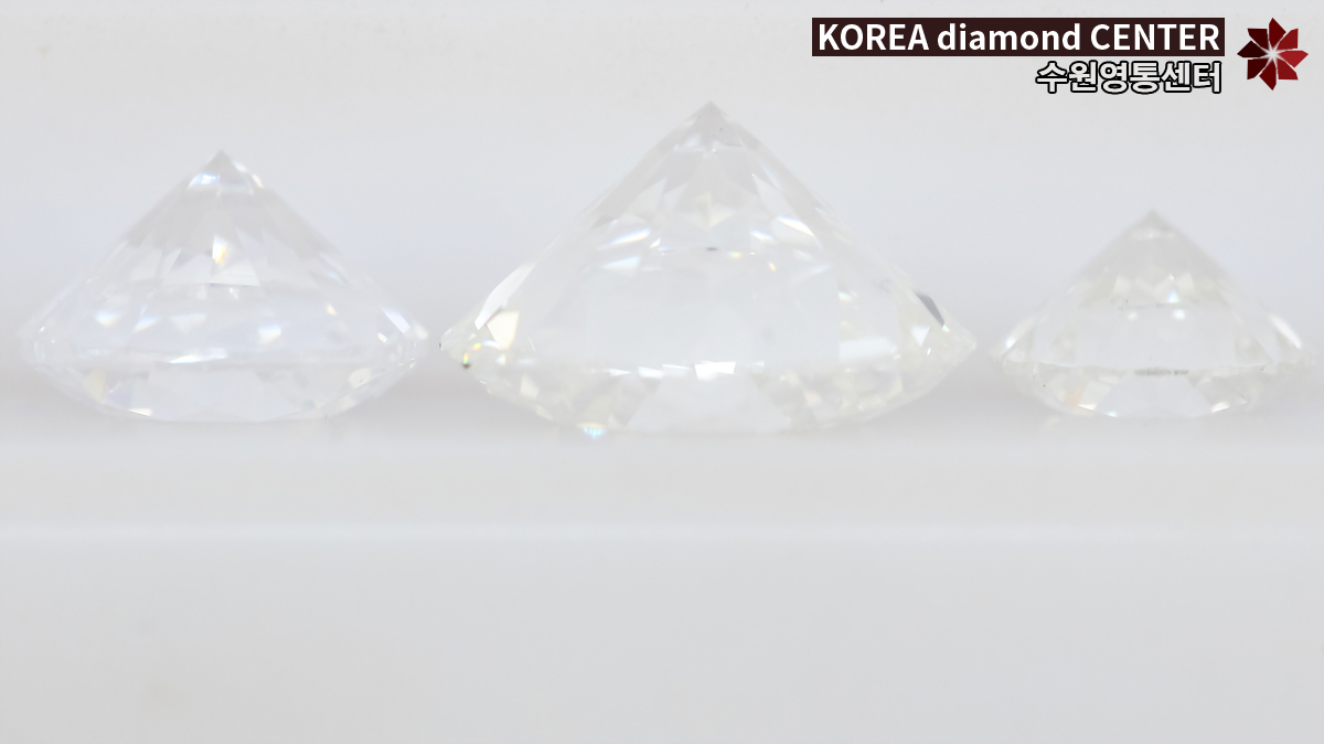 Color (컬러) 수원영통센터에서 보유하고 있는 마스터 스톤과 고객님이 가져오신 2캐럿 다이아몬드의 컬러를 비교한 결과 노란빛이 확인되는 G 컬러 등급으로 감정되었습니다. 일반적인 다이아몬드의 컬러 등급은 D 컬러 등급부터 Z 컬러 등급까지 나누어지며, 베이스 컬러가 옐로우이기 때문에 컬러 등급이 낮아질수록 노란빛이 진해집니다. 고객님의 2캐럿 다이아몬드의 컬러 등급은 고객님이 구입하실 당시에는 가장 거래가 많은 등급이었지만 이제는 수요가 감소하며 거래도 가격도 하락한 등급입니다.