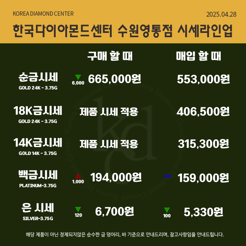 2025년 4월 28일 금시세 총정리|순금, 24K, 18K, 14K 매입가