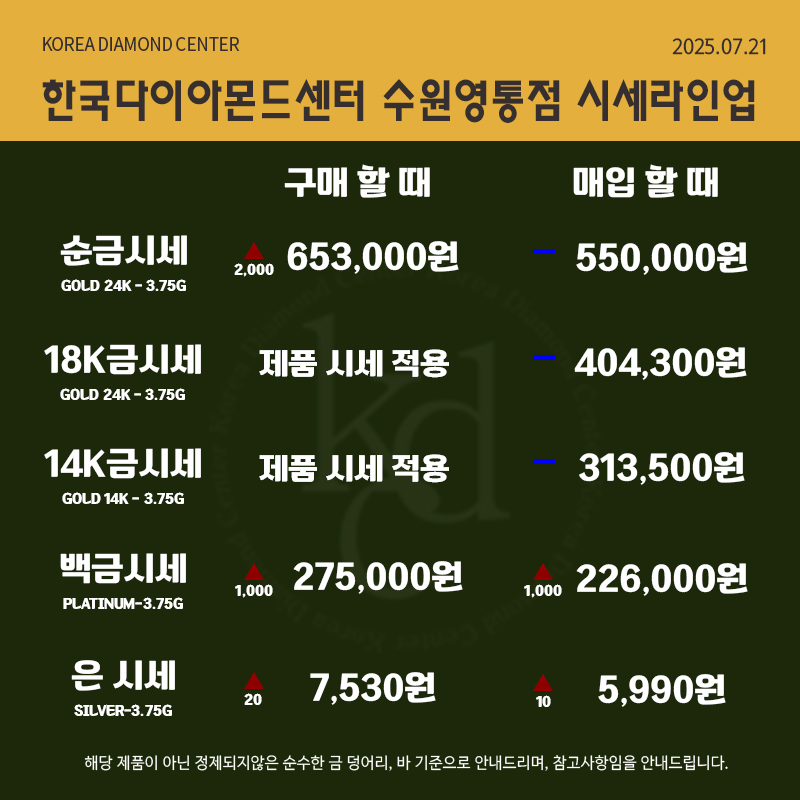 [2025년 7월 21일] 금시세 한눈에!|순금·24K·18K·14K 최고가 매입 안내