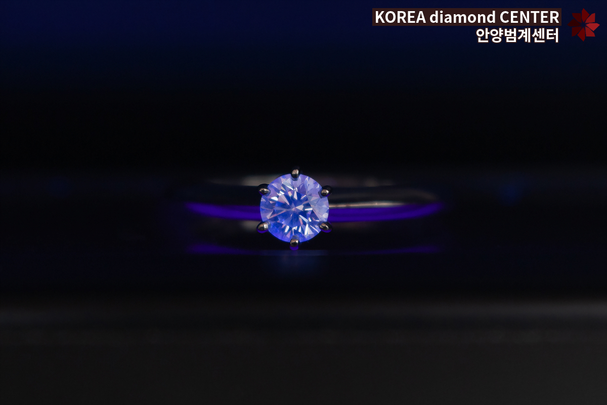 먼저 자외선 형광반응이 무엇인지에 대해 이야기해 보면 자외선을 비췄을 때 다이아가 반응하는 정도에 따라 나뉘는 등급을 얘기합니다. none > faint > moderate > strong > very strong으로 총 5가지로 나누어져 있고 뒤에 반응할 때 나타나는 컬러를 함께 표기합니다. 하지만 일반적으로 나타나는 자외선 형광반응의 색은 blue 컬러인 경우가 많아 컬러 표기를 생략하기도 합니다.
